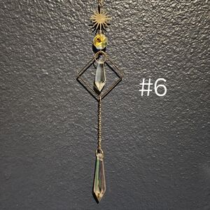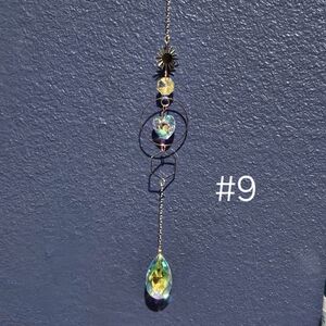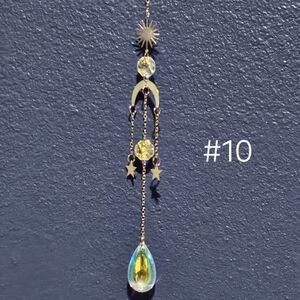 Dazzling celestial suncatchers crafted with iridescent crystals and gold accents.