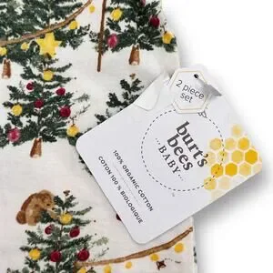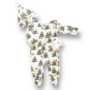 Burt's Bees Baby Mama Bear Christmas Jumpsuit & Knot Top Hat Girls Sz Newborn