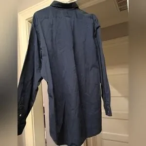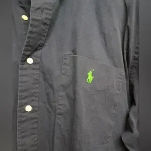 Ralph Lauren men's size XL dress shirt. Navy blue cotton long sleeve button-down shirt. Lime green embroidered horse logo. Perfect for casual outings. New with tags.
