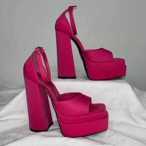 Public Desire Hot Pink Platform Barbie Inspired 70’s Retro Sexy Heel size UK 4