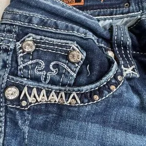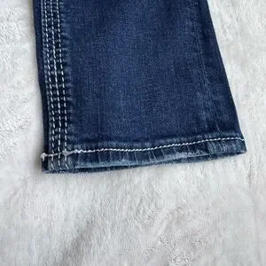 Stylish jeans with intricate stitching. Features classic five-pocket design. Perfect for casual wear.