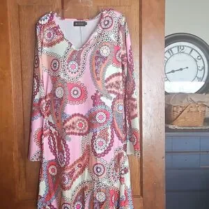 Stylish patterned dress in pink with intricate designs. Perfect for any occasion. This only comes with the dress.