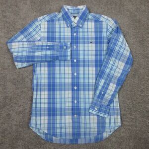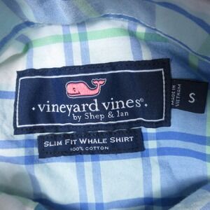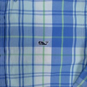 Vineyard Vines Shirt Mens Small Blue Plaid Slim Fit Whale Cotton Logo Button Up