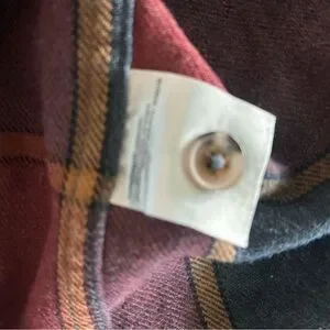 RVCA shirt with a vibrant plaid pattern. Features a mix of red, gray, and orange tones.