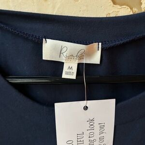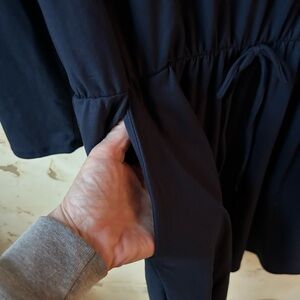 🆕 RIAH Fashion NWT Navy Long Sleeve Short Dress Medium Midi Hem Waist Pockets 💙