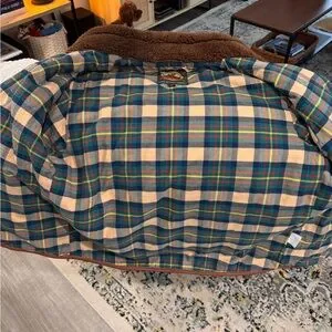 Kiel James Patrick Great Moose sherpa fleece jacket with plaid lining. Unisex design in size XS. Fits a women’s size Small well (current owner is a women’s small and it fits comfortably). Full-zip front, thick fleece exterior, and soft flannel lining. Pre-owned in very good condition with no major wear or damage. Clean and ready to wear.