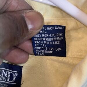 Get ready to elevate your wardrobe with this stunning yellow Lands' End Men's Pinpoint Oxford Long Sleeve Button-Down Shirt. This shirt is perfect for any occasion, whether it's for travel, casual or business. It has a collared neckline with a button-down style that makes it easy to wear and maintain.
