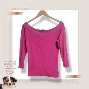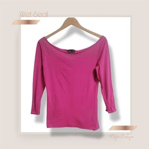 🌿Wet Seal Women’s Large Hot Pink Bedazzled Top Scoop Neck 3/4 Sleeve Cotton Y2K