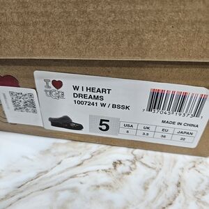 Stylish UGG mules with black sequins. Gray plush lining for comfort. Unique skull design adds flair.