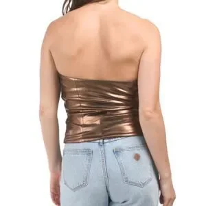 Elevate your style with this shimmering copper strapless crop top. Ideal for evenings out.
