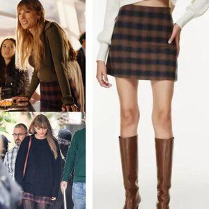 WILFRED Aritzia Classic Mini Skirt in Navy Rust Fade Plaid Sz 6