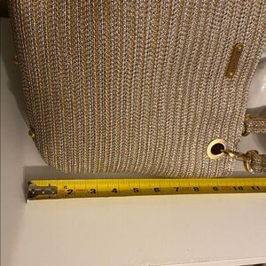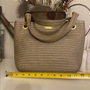 Elevate your style with this elegant golde woven bag. Perfect for any occasion, this bag combines functionality with a chic design. In excellent condition with no imperfections, clean inside and outside Great for traveling or everyday use, smoke free