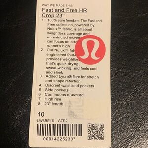 Lululemon Fast and Free HR Crop 23" Sz 10, NWT