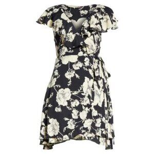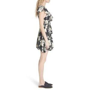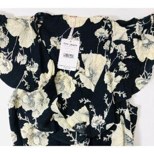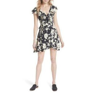 Free People Black Floral Boho Short Flutter Sleeve Wrap Mini Dress Sz S New