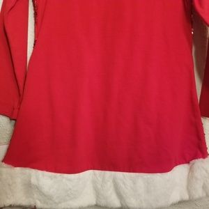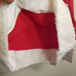 Red sequin long sleeve dress with faux fur