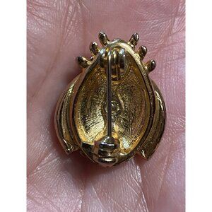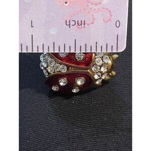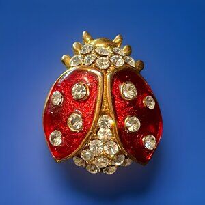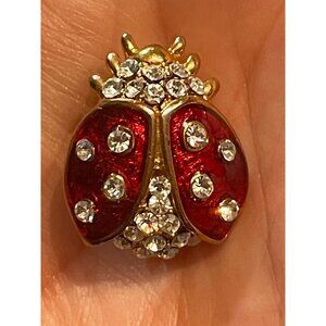 Signed SWAROVSKI Red Enamel Clear Rhinestone Gold-Tone Lady Bug Brooch Pin Swan
