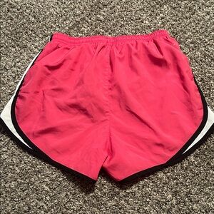 Vibrant hot pink shorts with black and white accents. Perfect for workouts. Classic Nike style. Size small - dri-fit.