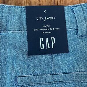 NWT, Gap size 0 chambray city short. 5 inch inseam, mid-rise