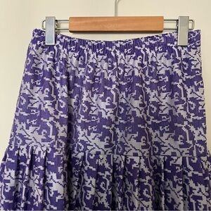 lovely skirt in excellent vintage condition. would fit as S-L due to the elastic waist. fabric tag is faded but this is a synthetic blend of some type.