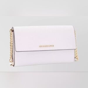 Elegant and stylish, this Michael Kors clutch bag in white is perfect for any occasion. Its sleek design and premium quality make it a must-have accessory.