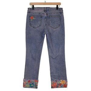 DRIFTWOOD Colette Embroidered Floral Straight Leg Jeans Women's 30x26 Crop Cuff