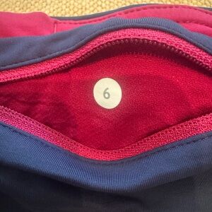 EUC Lululemon Athletica raspberry, blue and white floral speed up size 6 running shorts. Leg is 2 1/2 inches long.