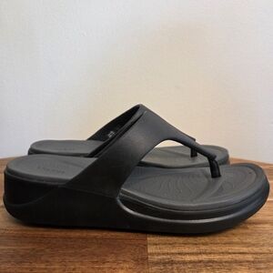 Comfortable and surprisingly stylish CROCs black flip flops for women. Perfect for casual outings. in pretty well new condition. Classic and supportive