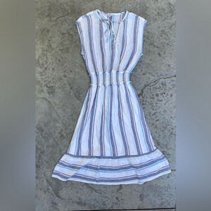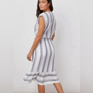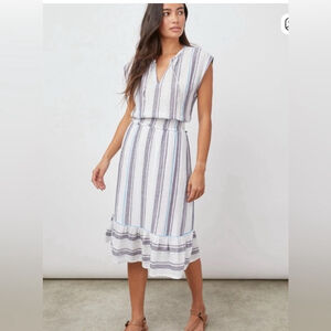 Rails Ashlyn Linen Blend Midi Dress Aegean Blue Stripe Coastal Vacation Airy