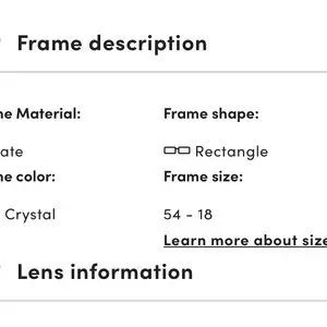Crystal blue color. Frames only Comes with case box and cleaning cloth. See photos for details