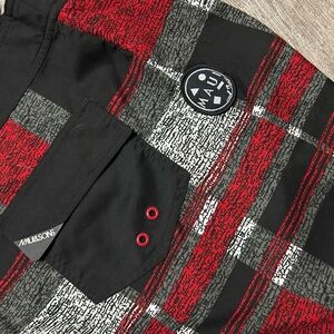 Maui and Sons Red and Black Plaid Board Shorts size 38 NWT