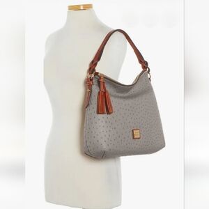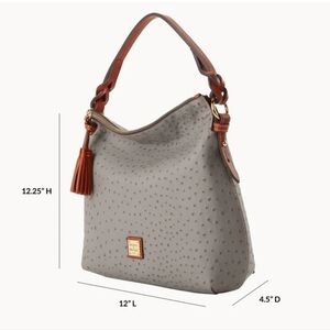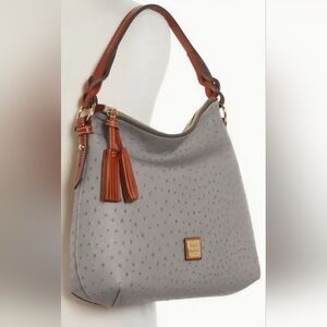 🔥New W/Tags, Dooney & Bourke Twist Strap Hobo In Rare Grey Ostrich/Natural/Gold