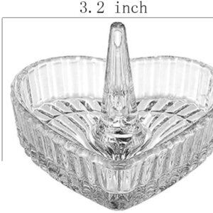 Crystal Glass Heart-Shaped Storage Box Embossed Jewelry Tray Ring Holder