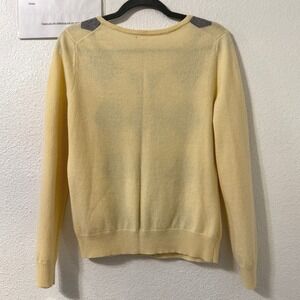 Talbots Sweater M Butter Yellow Argyle Pearl Button Lambswool Academia Preppy