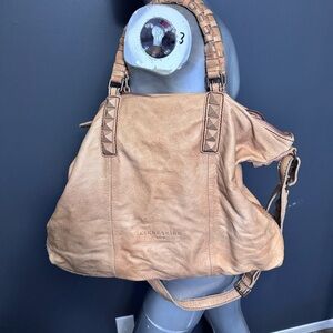 Liebeskind Genuine Leather Studded Tan Satchel Purse