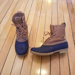 L.L.Bean Original 8" Bean Boots in Tan Navy Waterproof Winter Snow Duck Boots