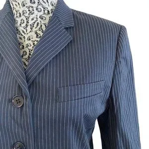 Vintage Ralph Lauren Women's Pinstripe Navy Blazer 4-Button