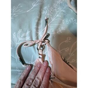Pink with palm trees Body Glove Size M String Bikini with lightly scrunchy bottoms and push up bumps on the top.