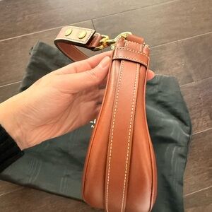 Celine 2021 Tan Calfskin Medium Ava Shoulder Bag. Top zip closure. Brown suede interior lining.