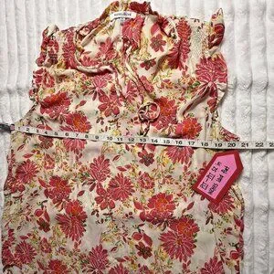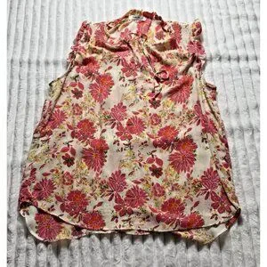 Rose + Olive Pink Yellow Lightweight Floral Sleeveless Tank Blouse, SZ XL
