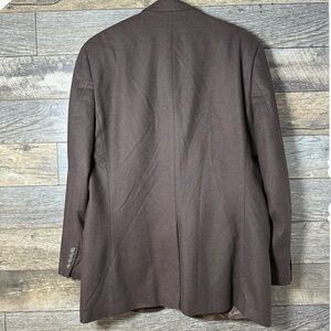 Elevate your style with this classic brown men's blazer. Perfect for any occasion, this blazer offers a sophisticated look with its rich brown color. Ideal for both formal and casual settings. In excellent, flawless, preowned condition.