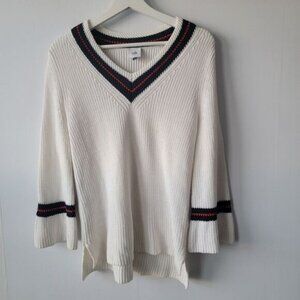 Cabi womens Faye Lace Bell Sleeve V-Neck White Sweater size S ivy league