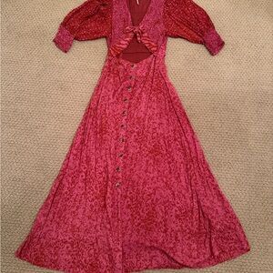This elegant red maxi dress features a stylish button-down design and a flattering fit. Perfect for any occasion, it combines comfort with a touch of sophistication.
