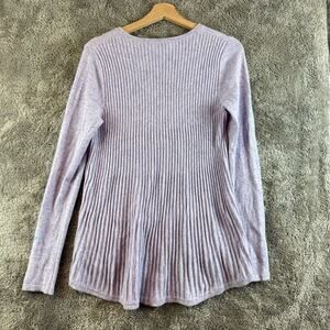 Adrienne Vittadini Purple Ribbed Pleated Sweater 100% 2 ply Cashmere M Medium