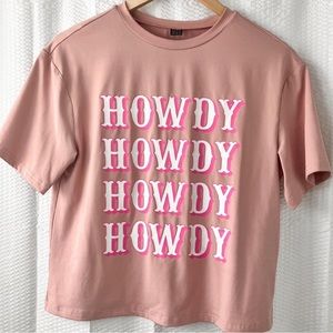 Pink Howdy Western Graphic Tee Drop Shoulder Cowboy Cowgirl Shirt Size Small