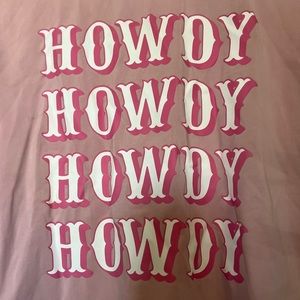 Adorable baby pink “HOWDY” western graphic tee with bold stacked lettering. Features a relaxed drop-shoulder fit, soft lightweight material, and easy everyday style. Perfect for country concerts, rodeos, Nashville trips, bachelorette weekends, or casual cowgirl outfits. Women’s size Small. Excellent condition!