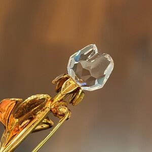This exquisite brooch features a clear crystal rose set on a gold-plated stem with detailed leaves. Perfect for adding a touch of elegance to any outfit. Like new condition,no original box.