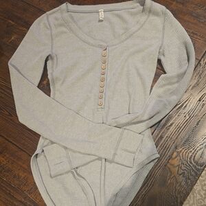 Free People Intimately Gray Ribbed Button-Up Bodysuit