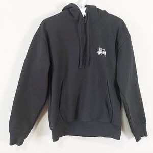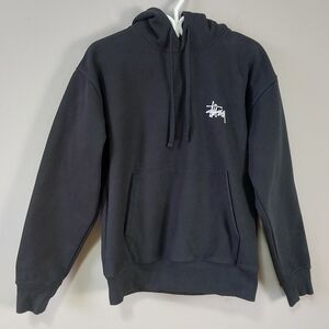 Stussy Men Hoodie Sweatshirt Small Black Drawcord Ribbed Cuffs Hem Cozy Casual