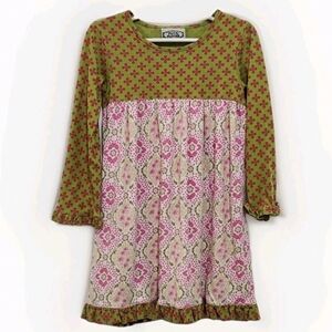 Flit & Flitter Girls 4 Long Sleeve Boho Dress Ruffle Green Pink Fall Cottagecore
