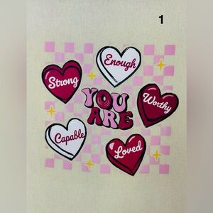 Handcrafted canvas tote with a Valentine's Day theme.